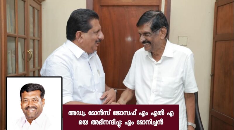അഡ്വ. മോൻസ് ജോസഫ് എം എൽ എ യെ അഭിനന്ദിച്ചു.