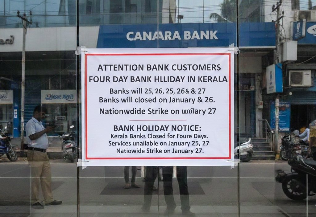 ബാങ്ക് ഇടപാടുകാർ ശ്രദ്ധിക്കുക: സംസ്ഥാനത്ത് നാല് ദിവസം ബാങ്കുകൾ അടഞ്ഞുകിടക്കും; ജനുവരി 27-ന് പണിമുടക്ക്